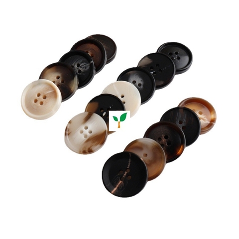 모직 세트 캐주얼 윈드 브레이커 코트 의류를위한 네 눈 인공 뿔 수지 스틱 패턴 버튼